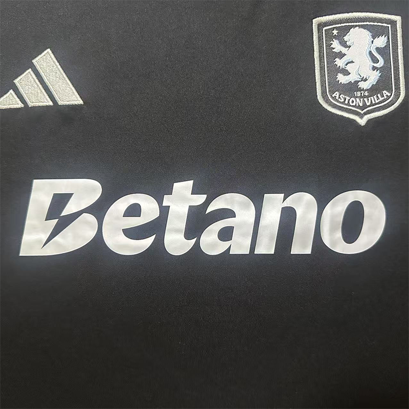 The Youth Aston Villa 2025-26 Away Kit strikes a perfect balance between modern athletic design and subtle nods to club identity. The dominant black base gives the kit a sleek, aggressive edge, while the light sky-blue accents—seen in the three shoulder stripes, collar lining, and shorts piping—introduce a refreshing contrast and highlight energy and movement.